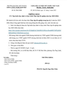 Vào ngày 1/10/2025 buổi Tập huấn Quy định và Quy trình Thực tập tốt nghiệp [...]