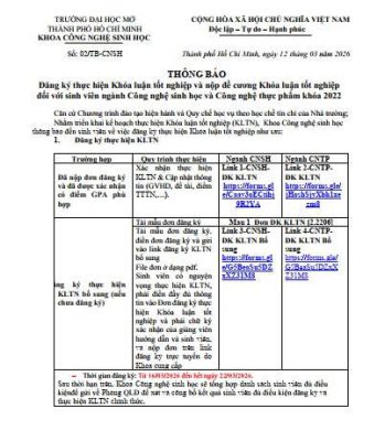 Khoa Công nghệ Sinh học – Trường Đại học Mở TP.HCM thông báo đến sinh...