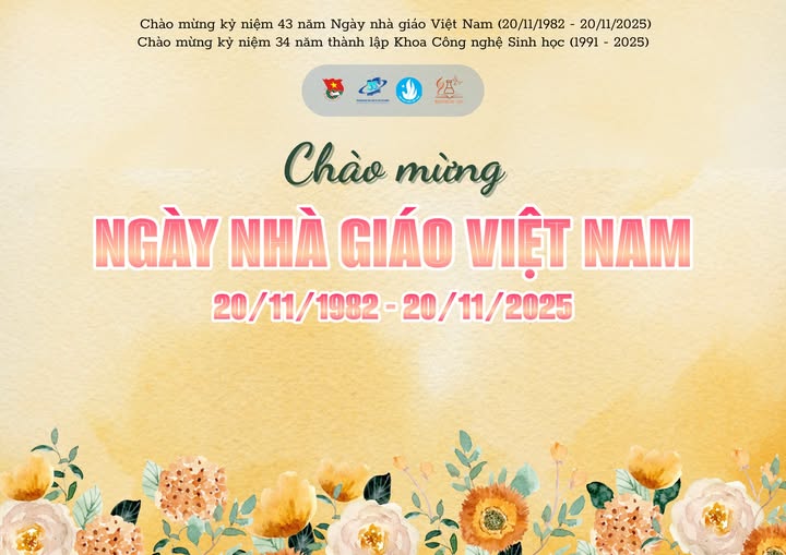 Nhân dịp kỷ niệm Ngày Nhà giáo Việt Nam 20/11, Đoàn – Hội Khoa Công nghệ Sinh học xin gửi đến Quý Thầy, Cô lời chúc sức khỏe dồi dào, hạnh phúc, luôn giữ trọn nhiệt huyết với nghề giáo. Trong suốt hành trình học tập và nghiên cứu, chúng em luôn cảm nhận được sự tận tâm của Thầy Cô qua từng bài giảng, từng giờ thực hành trong phòng lab và cả những lời định hướng khi sinh viên gặp khó khăn. Những kiến thức chuyên môn, kỹ năng nghề nghiệp và bài học về đạo đức mà Thầy Cô truyền đạt chính là nền tảng giúp chúng em vững bước trên con đường trở thành những người làm khoa học trong tương lai.