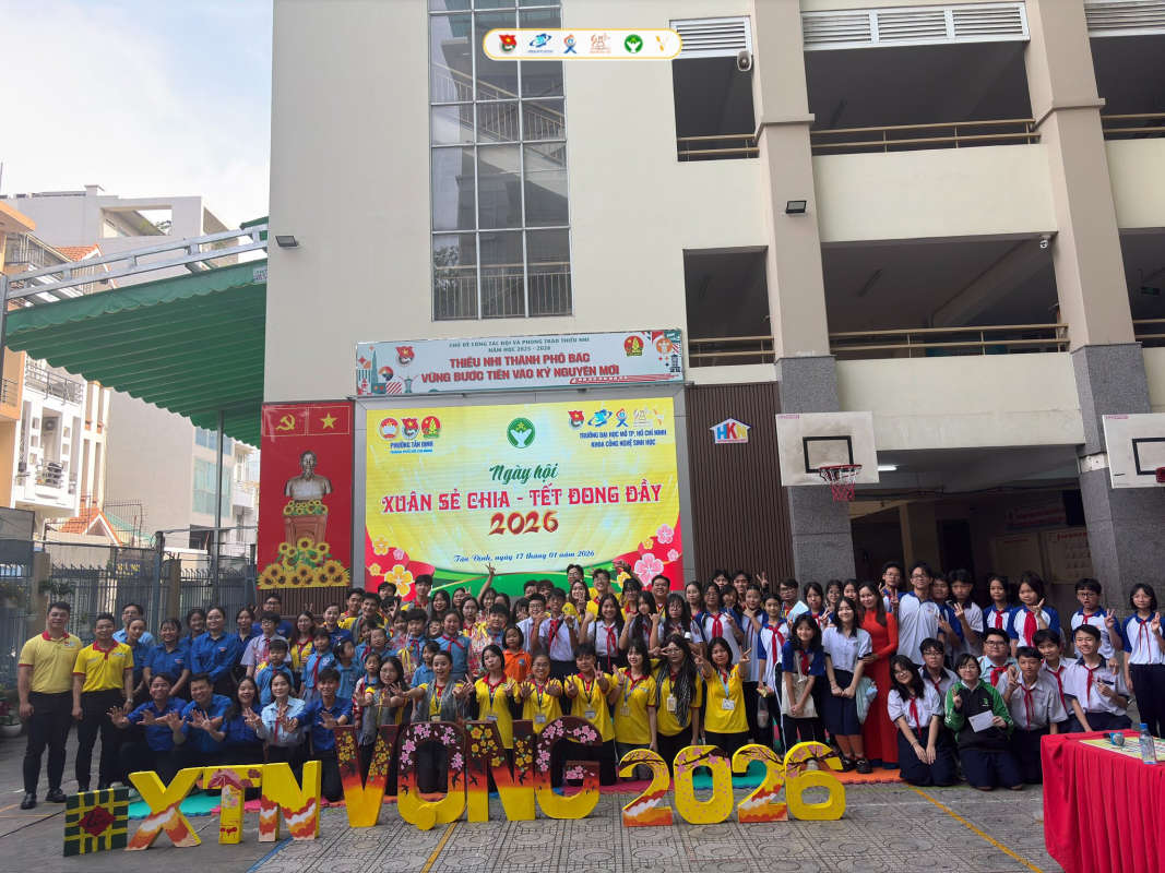 Trong khuôn khổ Chiến dịch Xuân Tình Nguyện “VỌNG” 2026, các chiến sĩ Khoa Công nghệ Sinh học phối hợp cùng phường Tân Định tổ chức Ngày hội Trẻ Thơ tại Trường THCS Huỳnh Khương Ninh, thuộc Mặt trận Thành Phố.