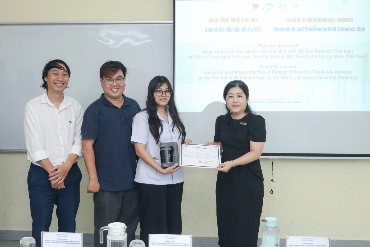Báo cáo giao lưu sinh viên trường Đại học Rangsit Thái Lan trao đổi hoạt động nghiên cứu tại khoa Công Nghệ Sinh Học