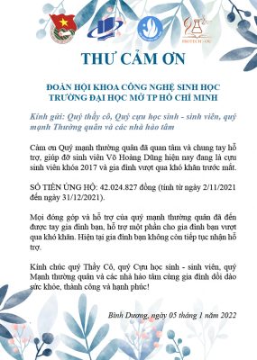 Thư cám ơn Posted on 01/07/202406/08/2024 by Admin Có liên quan Bài viết liên quan CHÚC MỪNG HỌC VIÊN TỐT NGHIỆP THẠC SĨ CNSH – Năm 2024 Th12 26, 2024 HỘI NGHỊ KIỆN TOÀN BAN CHẤP HÀNH LIÊN CHI HỘI KHOA CÔNG NGHỆ SINH HỌC NHIỆM KỲ 2024 – 2025 Th12 18, 2024 HỘI NGHỊ KIỆN TOÀN LIÊN CHI HỘI KHOA CÔNG NGHỆ SINH HỌC NHIỆM KÌ 2024 – 2025 Th12 13, 2024