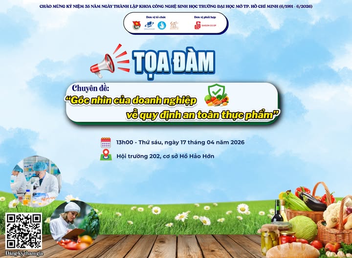 🎓 Đối tượng: Sinh viên Khoa Công nghệ Sinh học (sinh viên ngành CNTP khóa 2023, 2024 bắt buộc tham gia)